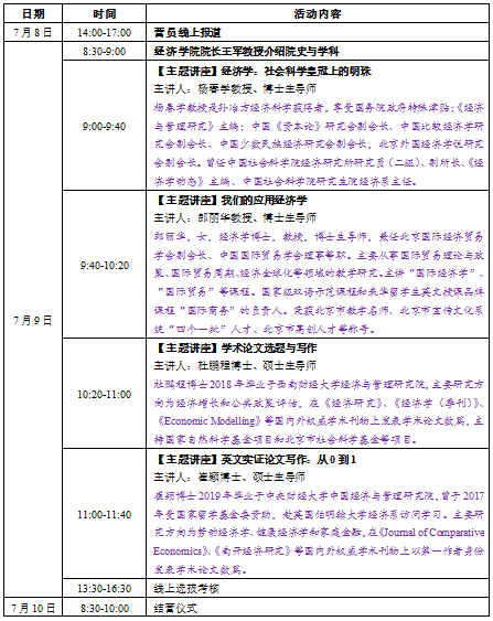 根据首都经济贸易大学研究生院的统一部署,经济学院2020年“全国优秀大学生夏令营”将于2020年7月8日-10日在线上举行。