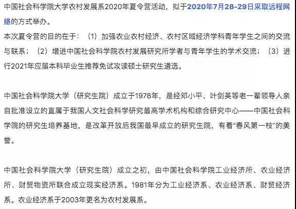 首页 > 保研资讯 > 拟招30营员!国科大农村发展系夏令营活动通知