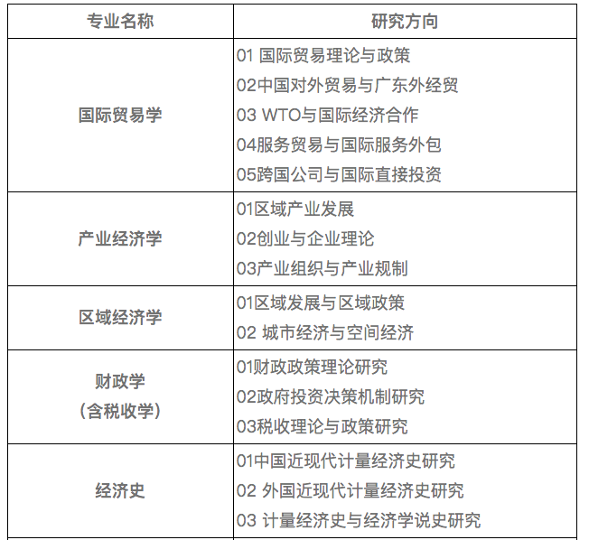 学院拥有理论经济学、应用经济学两个一级学科硕士学位授权点,下设国际贸易学、产业经济学、区域经济学、财政学(含税收学)、经济史、世界经济、国民经济学、劳动经济学和人口、资源与环境经济学九个二级学科硕士点。