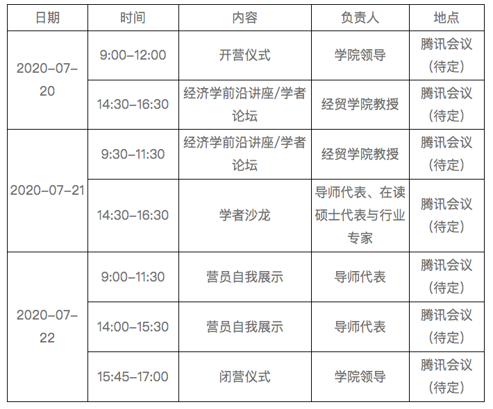 活动内容:经济学前沿讲座+学者论坛+学者沙龙+营员